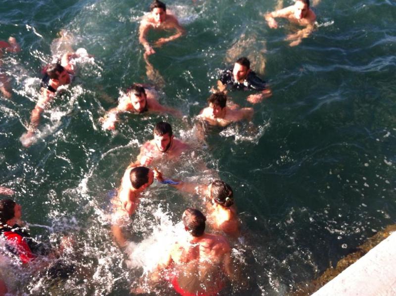 2. Νέοι και νέες (ή και μεγαλύτεροι πιστοί) βουτούν για να τον ανασύρουν.