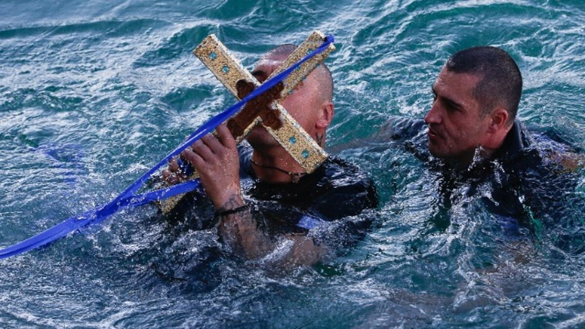 1. Ρίψη του Τιμίου Σταυρού στα παγωμένα νερά.