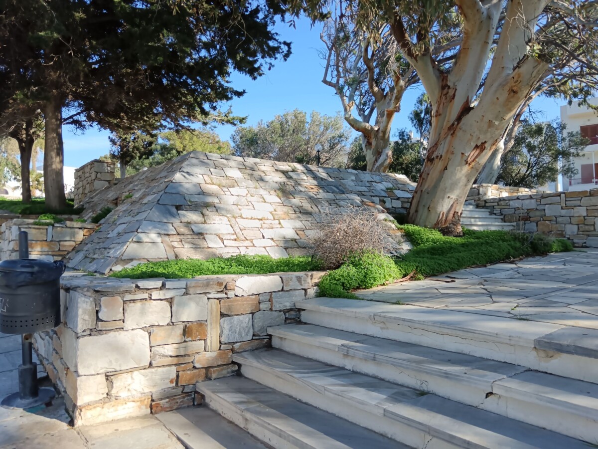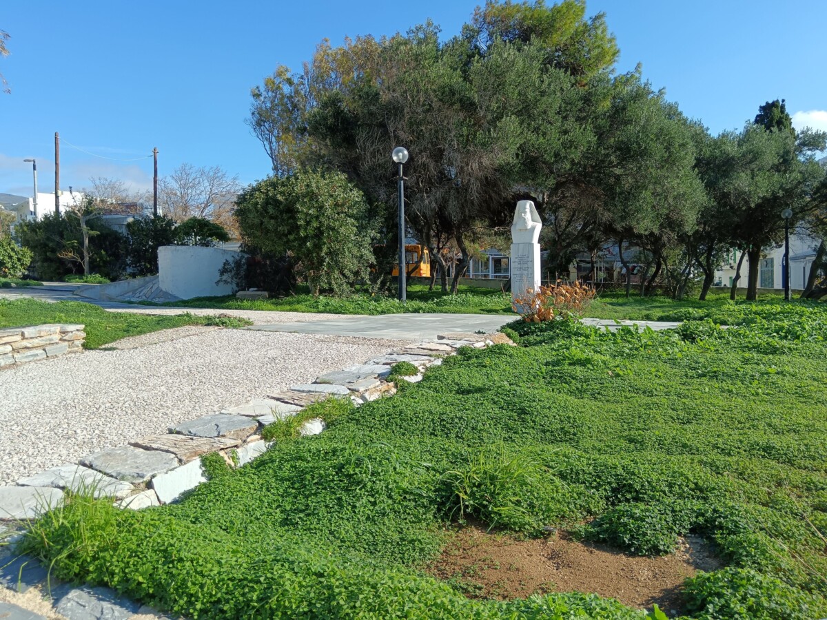 Χωριό χτισμένο μέσα στο πράσινο, σπάνιο για Κυκλάδες. Με θέα στη θάλασσα και διαδρομές που περνούν μέσα από νερά, δέντρα και πέτρες.