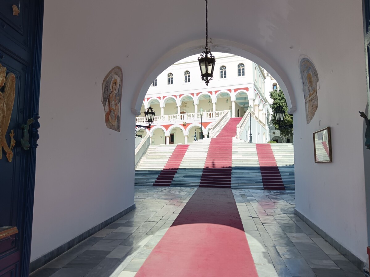 Η πορεία από το λιμάνι μέχρι τον ναό είναι ίσως η πιο συγκινητική διαδρομή του νησιού. Πολλοί προσκυνητές ανεβαίνουν γονατιστοί τον δρόμο, άλλοι περπατούν σιωπηλά, ο καθένας κουβαλώντας τον δικό του πόνο ή την δική του ευγνωμοσύνη. Ο παρατηρητής βλέπει πρόσωπα βαθιά συγκινημένα, βλέπει πίστη που δεν χρειάζεται λόγια. Η ατμόσφαιρα αυτή μένει χαραγμένη ακόμη κι όταν ο ταξιδιώτης επιστρέφει πίσω στην καθημερινότητά του.