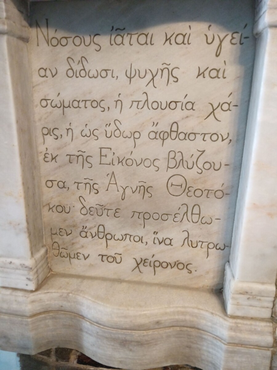 - Το θαύμα του ναύτη: Ένας ναυτικός σώθηκε από βέβαιο πνιγμό όταν προσευχήθηκε στη Μεγαλόχαρη. Το κύμα τον ξέβρασε στην ακτή και πλάι του βρέθηκε μια μικρή εικόνα.