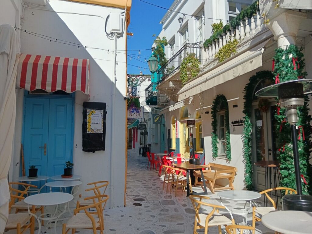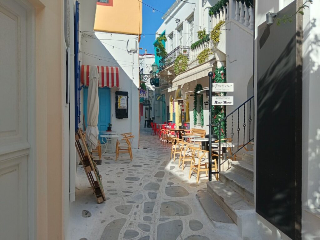Μια άλλη μέρα αφιερώθηκε περισσότερο στην ίδια τη Χώρα. Η περιήγηση στα στενά αποκάλυψε έναν τόπο ζωντανό αλλά χωρίς ένταση. Η πόλη δεν προσπαθεί να εντυπωσιάσει, επιβάλλεται με την απλότητα και την αυθεντικότητά της. Κάθε γωνιά έμοιαζε να έχει κάτι να πει: ένα παλιό μπαλκόνι με λουλούδια, μια μικρή εκκλησία που ξεπρόβαλλε ξαφνικά, ένα καφενείο γεμάτο καθημερινές ιστορίες.