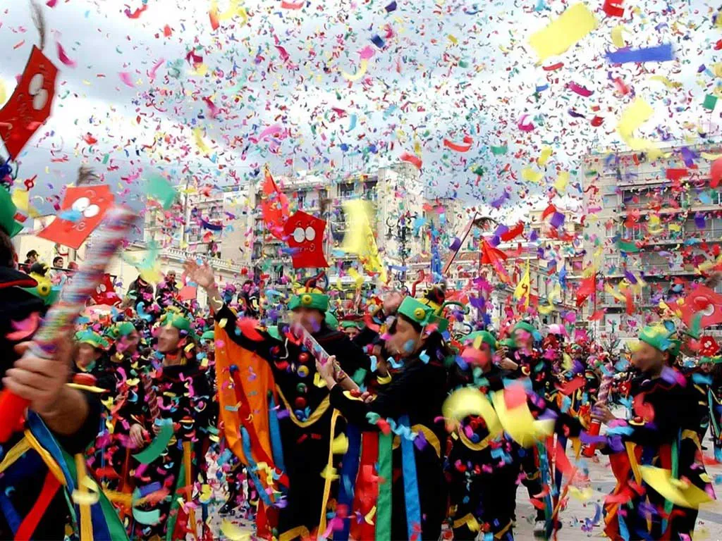 Το μεγαλύτερο και πιο εντυπωσιακό καρναβάλι της χώρας είναι το Πατρινό Καρναβάλι. Με ιστορία που ξεκινά από τον 19ο αιώνα, περιλαμβάνει παρελάσεις αρμάτων, κρυμμένο θησαυρό, χορούς, συναυλίες και το εντυπωσιακό κάψιμο του βασιλιά Καρνάβαλου στο λιμάνι της Πάτρας. Η πόλη μετατρέπεται σε ένα απέραντο σκηνικό χαράς και δημιουργικότητας.